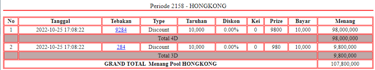 Selamat kepada User id : hok***m Telah berhasil mendapat kemenangan besar pada